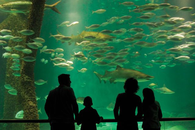 Tourists can visit the Audobon Aquarium. This is in New Orleans. This aquarium shows the animals and ecosystems of South Louisiana and the Gulf of Mexico. Also, families can watch animal keepers feed South African penguins. There are also opportunities to touch sharks and rays. The aquarium has virtual reality exhibits that make learning fun.
